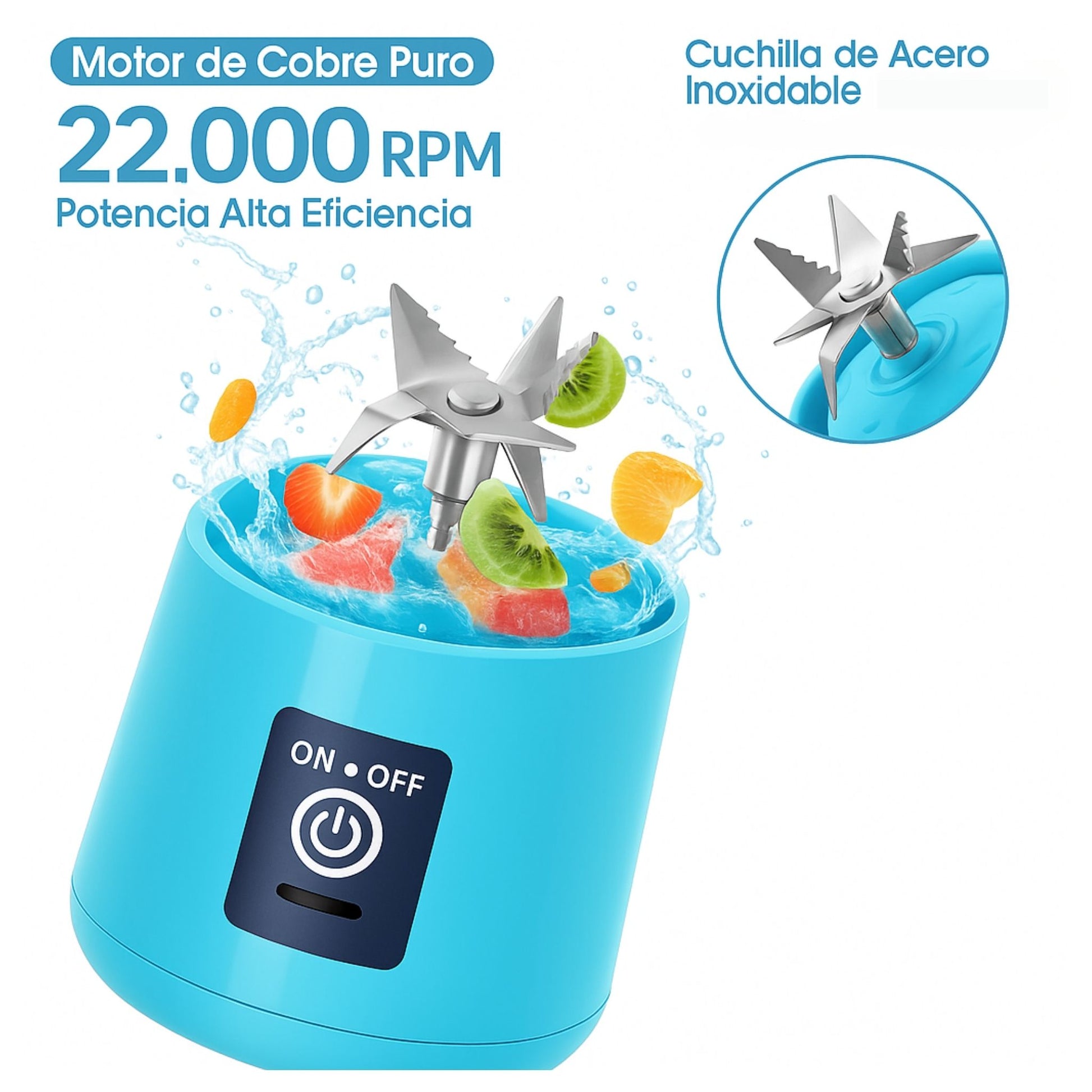 Con su motor de alto rendimiento y batería recargable por USB, mezcla sin esfuerzo frutas, proteínas y más, estés donde estés. Ideal para entrenamientos, oficina o viajes.